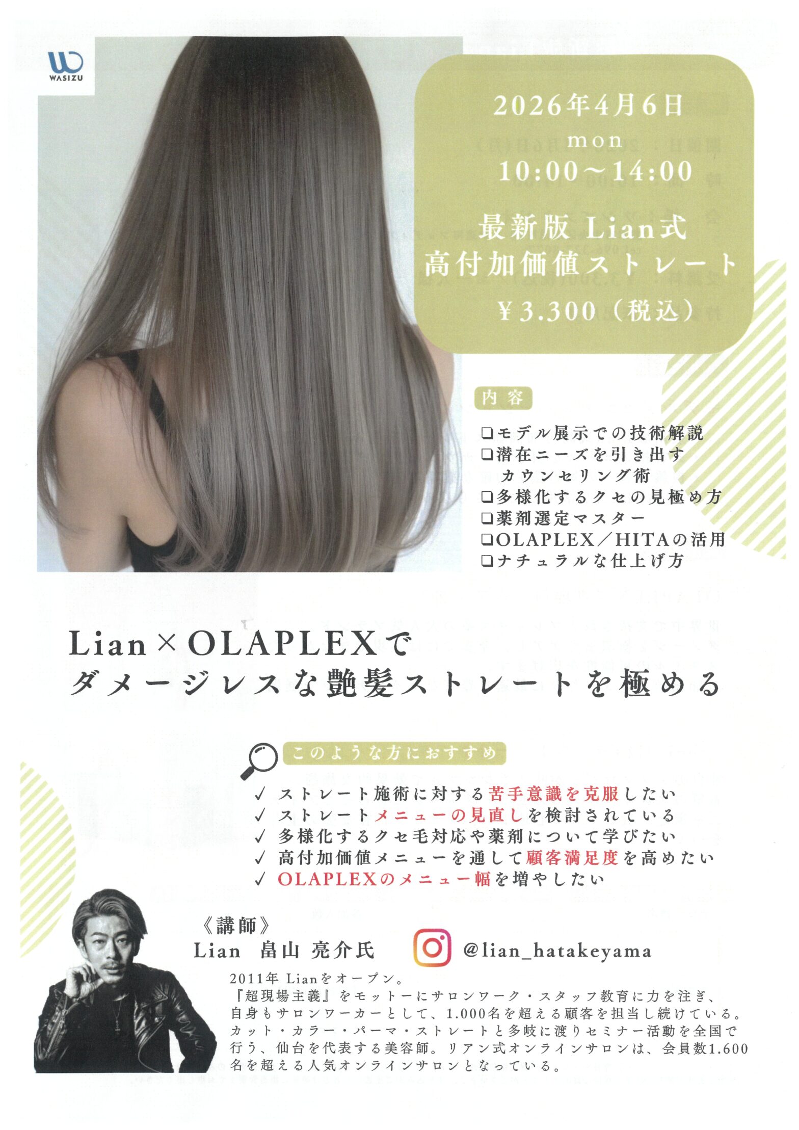 2026年4月6日(月)10:00~14:00 最新版 Lian式 高付加価値ストレートセミナー
